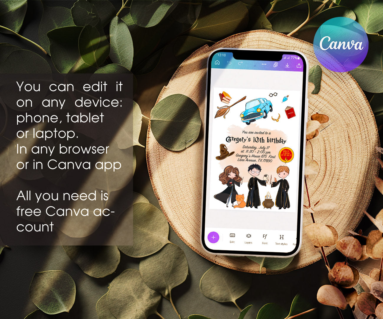 Printable Editable customizable Harry Potter birthday party invitation digital template. Instant download invite.