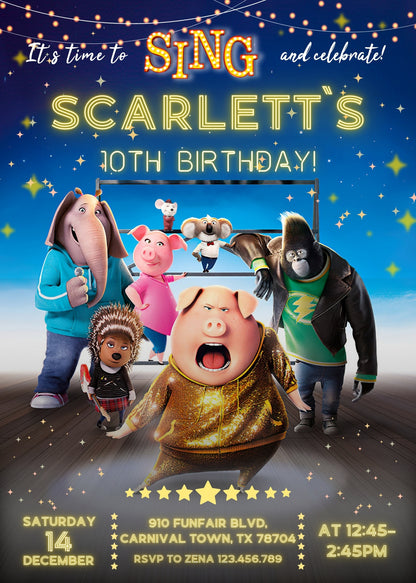 Related Tags: boy birthday, sing movie birthday, karaoke invite, singer invitation, music party, digital invite, editable invitation, birthday invitation, printable invitation, sing 2 invitation, evite, girl birthday, instant download
