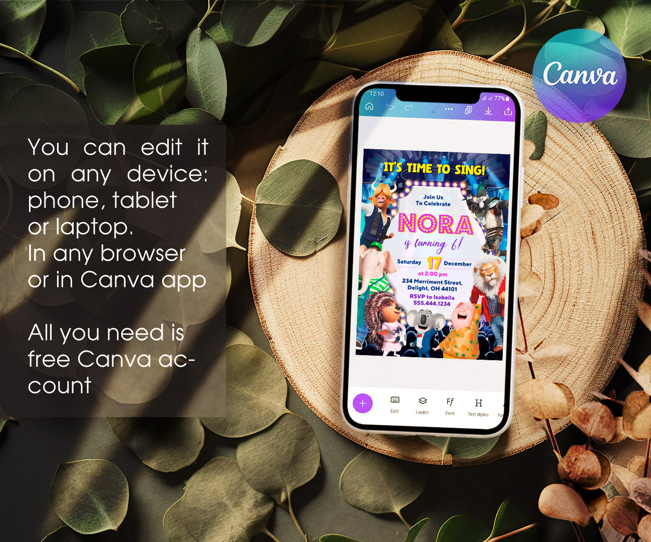Related Tags: boy birthday, sing movie birthday, karaoke invite, singer invitation, music party, digital invite, editable invitation, birthday invitation, printable invitation, sing 2 invitation, evite, girl birthday,